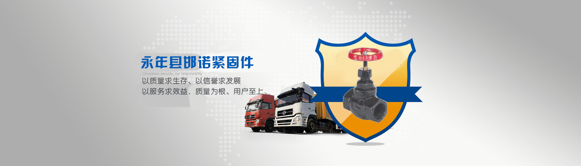 永年縣邯諾緊固件地處全國(guó)最大的標(biāo)準(zhǔn)件生產(chǎn)基地---河北省永年縣河北鋪工業(yè)區(qū),是一家規(guī)模較大、建廠(chǎng)較早的閥門(mén)、管件、異型件專(zhuān)業(yè)生產(chǎn)企業(yè),緊臨京廣鐵路、107國(guó)道和京深高速公路,交通十分便利。 主要產(chǎn)品有:閥門(mén)、管件、法蘭盤(pán),家具螺絲、雙頭牙,錘母,橡膠墊板,橡膠碰頭,異型平墊,玻璃幕墻T型螺栓,異型螺栓、異型螺母,絲杠,地腳螺栓、雙頭螺栓、U型螺栓,穿墻螺栓,T型螺栓,四方螺栓、梅花絲、斗型絲、元寶絲,馬車(chē)螺栓,犁尖絲,魚(yú)尾螺栓,工礦螺栓,沉頭帶耳螺栓